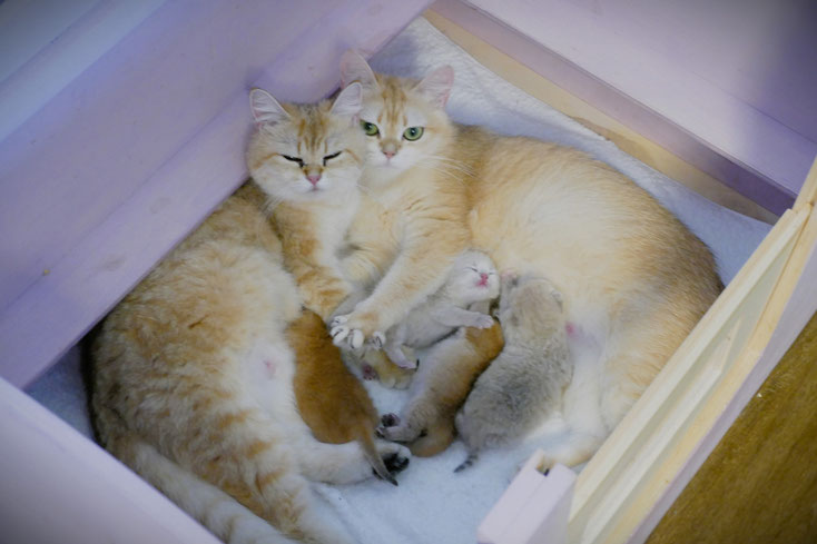 Unsere Unique Sunrise ständig in Kuschelstimmung. Demnächst erfolgt die Verpaarung mit Alfred. Wir erwarten Goldene Kitten